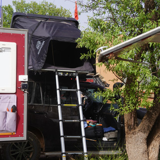 Etwas abseits der Straße an einem kleinen grünen Fleck mit Büschen und Bäumen haben wir dann unser Übernachtungs-Biwack aufgeschlagen.